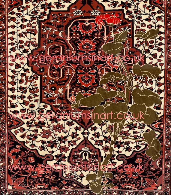 Miss Bel Cowie (Scottish, 1943 - 1983). Silk Screening (Large Screenprint onto paper) Titled 'Red Geranium for an Oriental Carpet'. Signed and dated Feb 1980. (Private Collection).